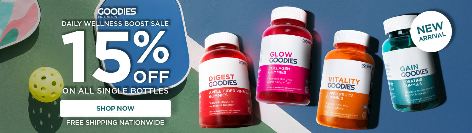 Everybody knows the powerful benefits of healthy nutrients. But often do they have a funny flavor and are complicated to integrate in your daily routine. Going forward you don't have to miss out on your health benefits any longer. Goodies Nutrition makes healthy and impactful nutrients broadly available in a tasty and convenient way at affordable prices. Get your goodies, take your wellness gummies every day, and live your best healthy life.