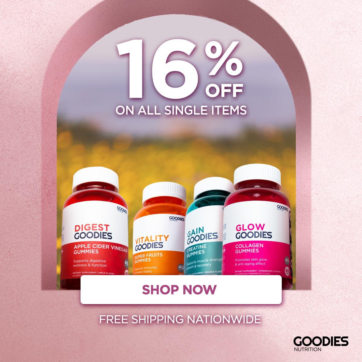 Everybody knows the powerful benefits of healthy nutrients. But often do they have a funny flavor and are complicated to integrate in your daily routine. Going forward you don't have to miss out on your health benefits any longer. Goodies Nutrition makes healthy and impactful nutrients broadly available in a tasty and convenient way at affordable prices. Get your goodies, take your wellness gummies every day, and live your best healthy life.