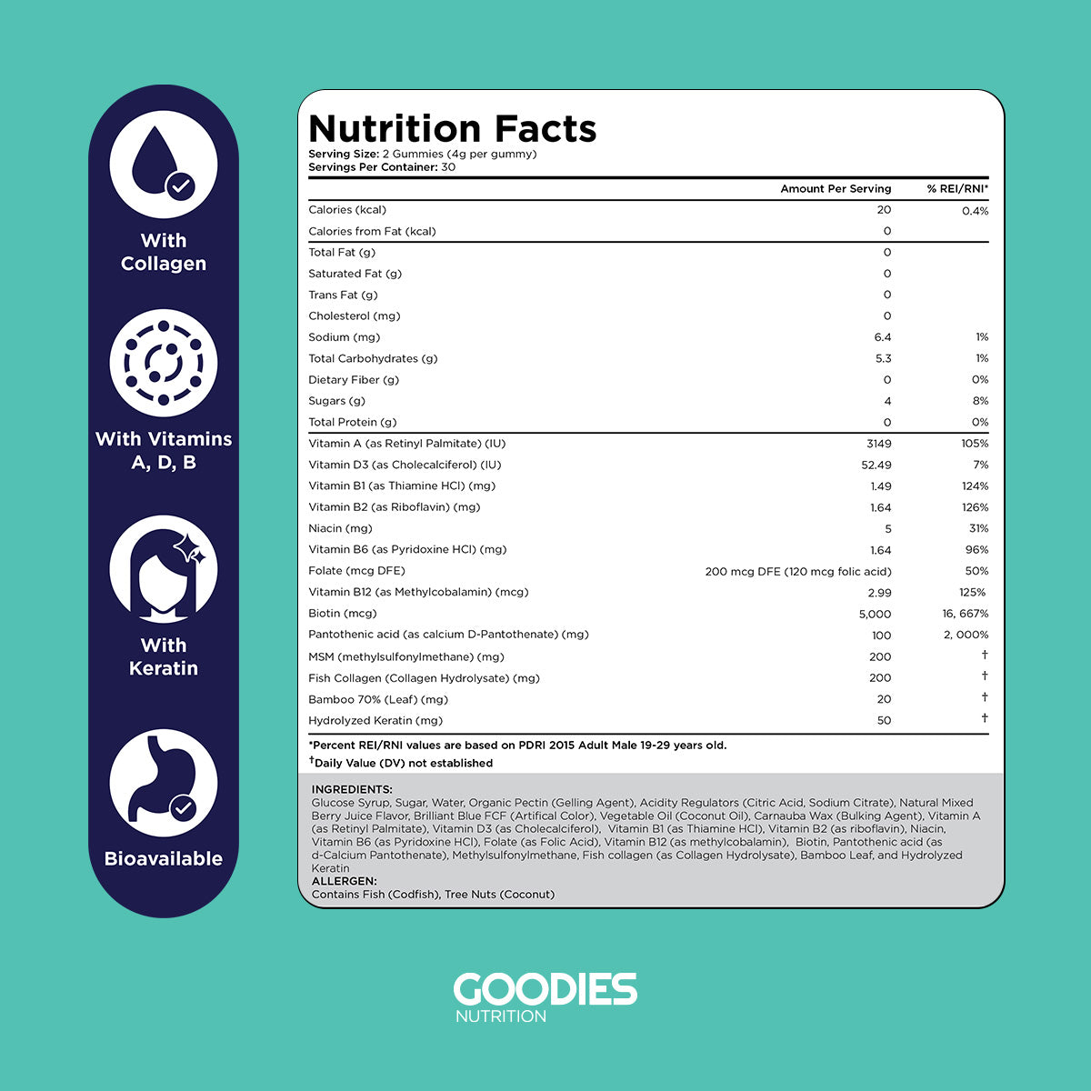 Our Beauty Goodies contain this vitamin and support hair growth and texture, skin hydration and elasticity, and nail growth. This is definitely a must-have in your beauty routine!