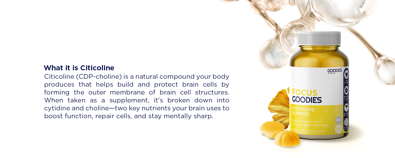 Our Focus Goodies contain citicoline, a brain-boosting compound that helps sharpen concentration, improve memory, and support overall brain health. It enhances mental energy and neurotransmitter activity — helping you stay focused, think clearly, and power through mentally demanding days.