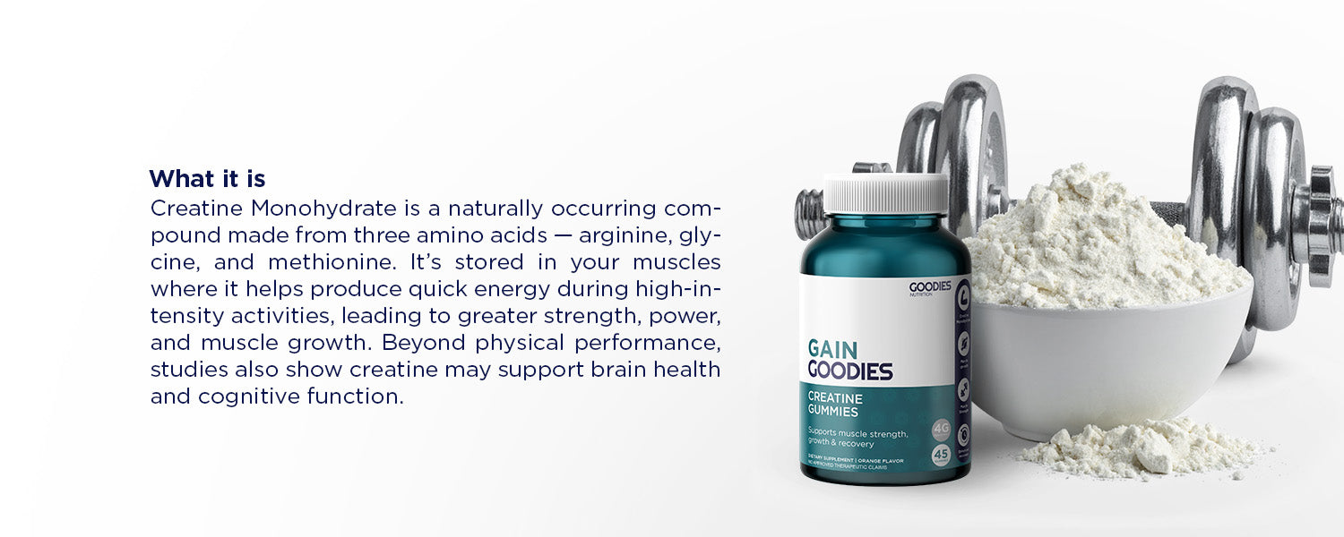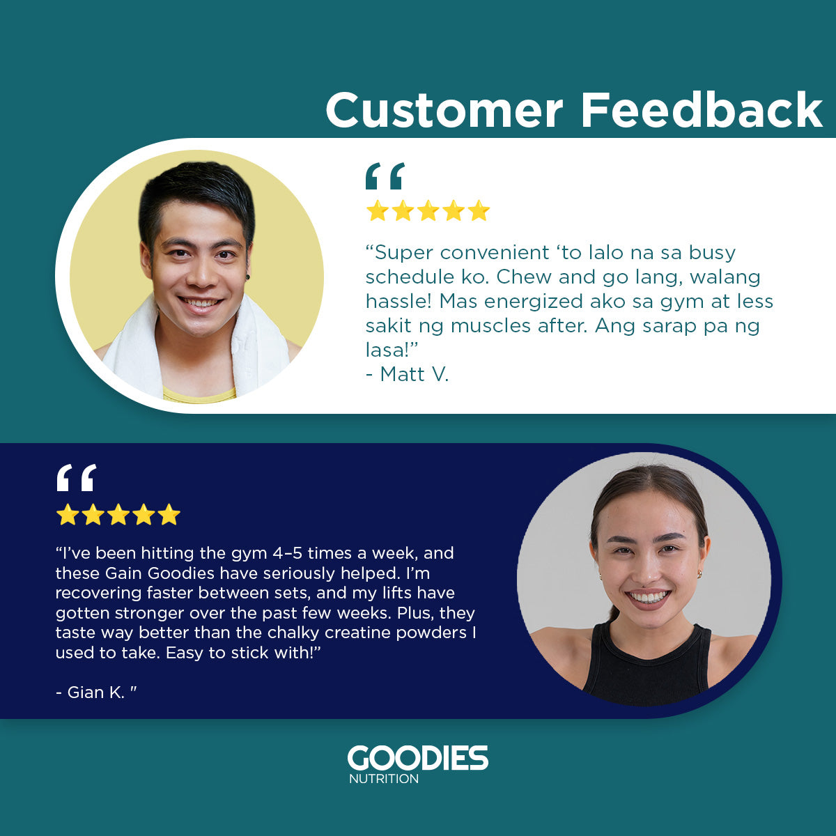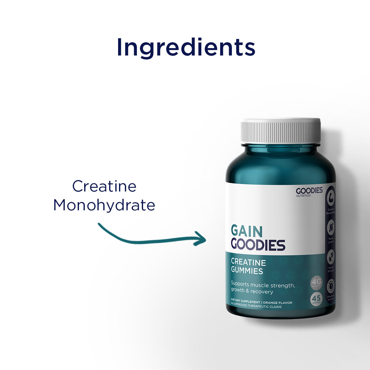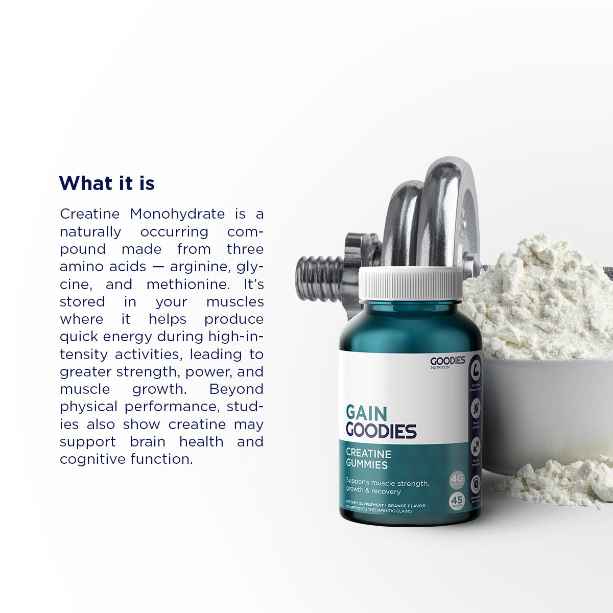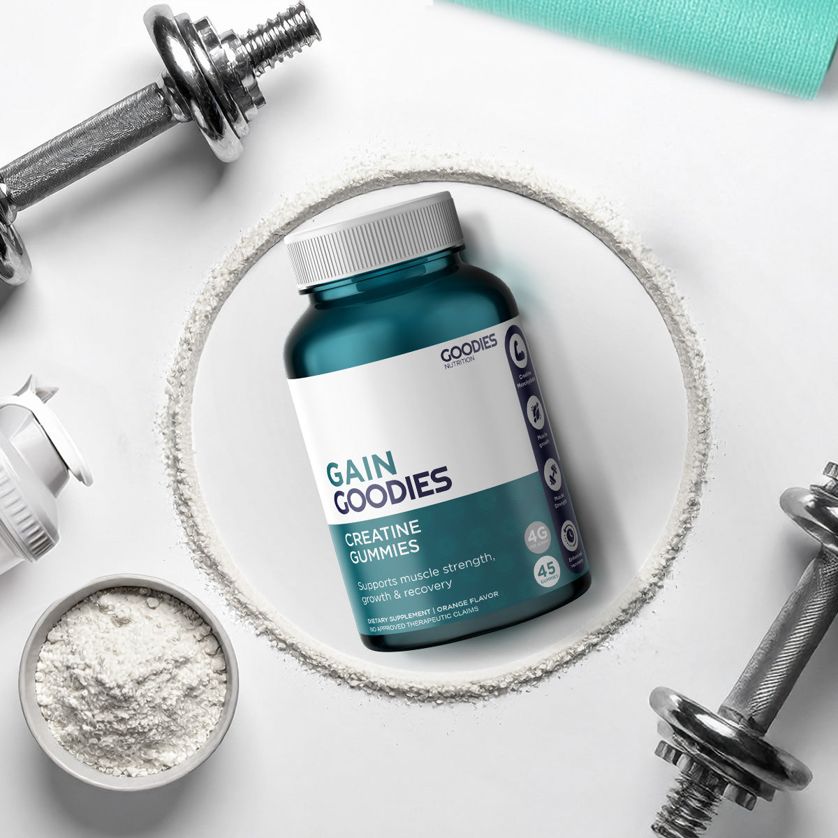 Gain Goodies offer a convenient and tasty way to get your daily creatine dose — no powders, no mixing, just chew and go.