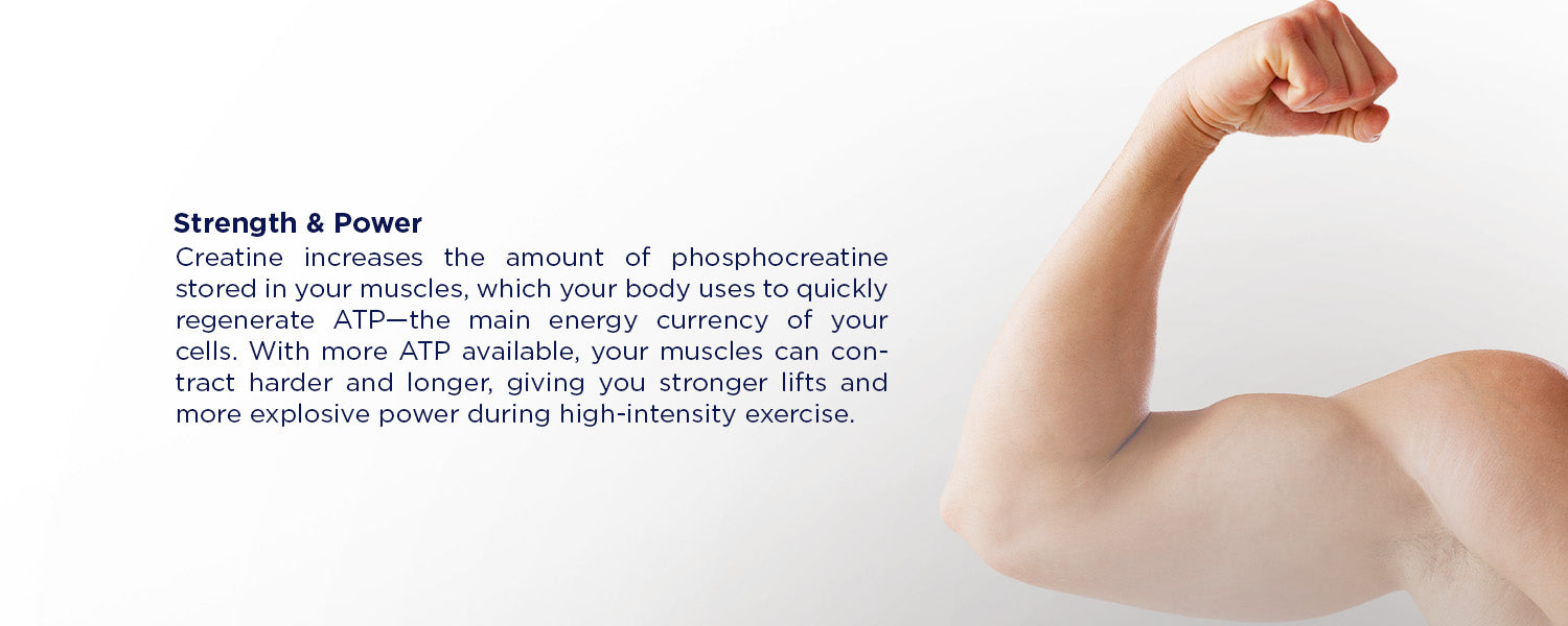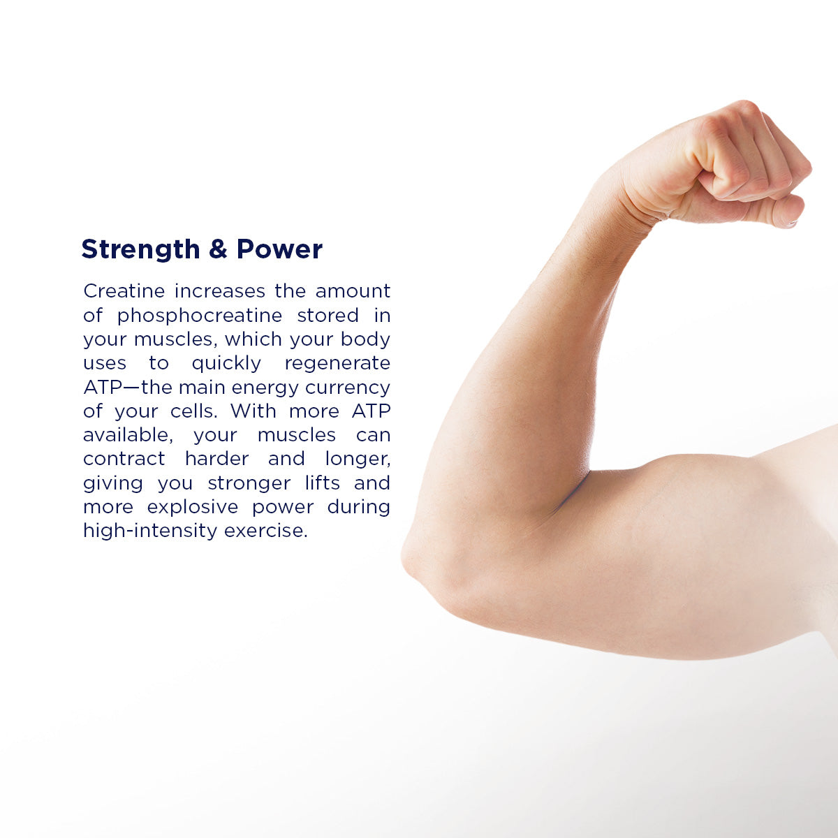 Creatine Monohydrate supports explosive strength and power output by fueling your muscles with quick-access energy during intense exercise.