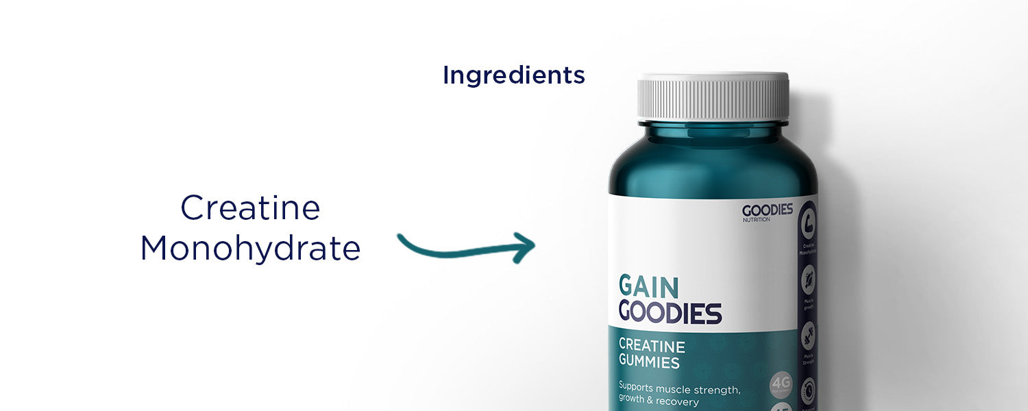 Our Gain Goodies contain creatine monohydrate, a compound naturally found in our muscles that helps increase energy output during high-intensity exercise. It supports strength, muscle growth, and faster recovery — making it easier to push harder, train longer, and bounce back quicker after workouts.