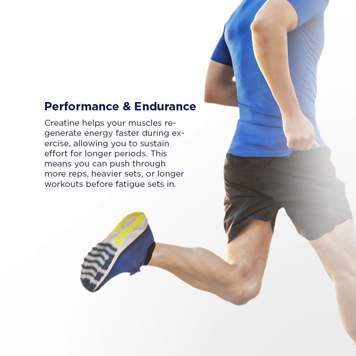 Creatine fuels brain cells with energy, especially during stress or fatigue, helping you stay sharp and focused. It may also improve memory, mental clarity, and reaction time in both active and everyday settings.