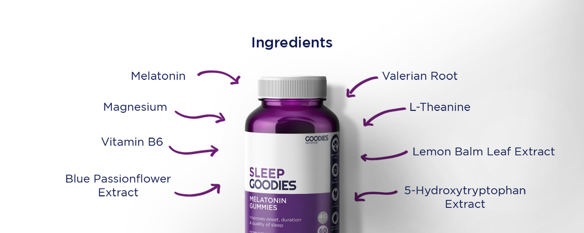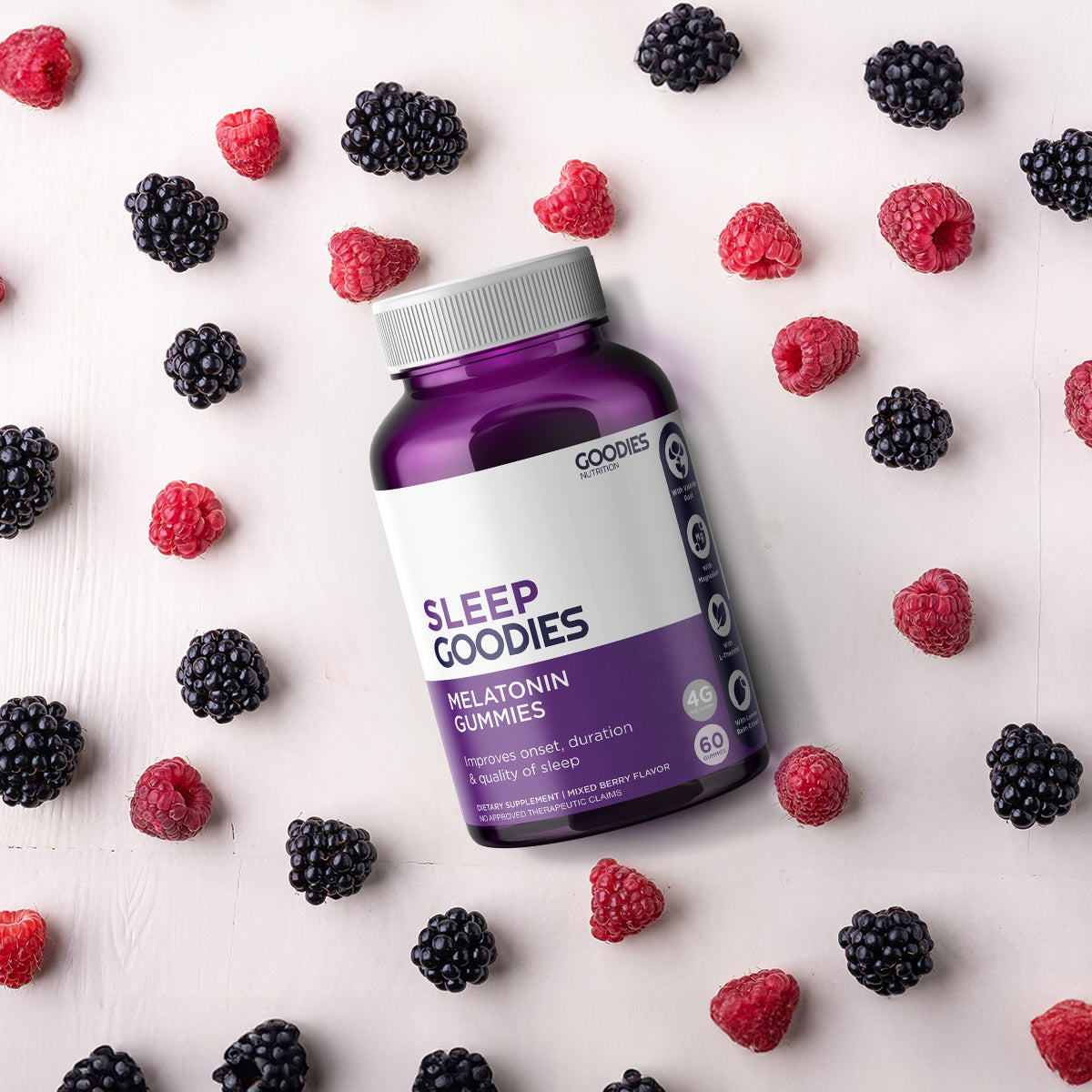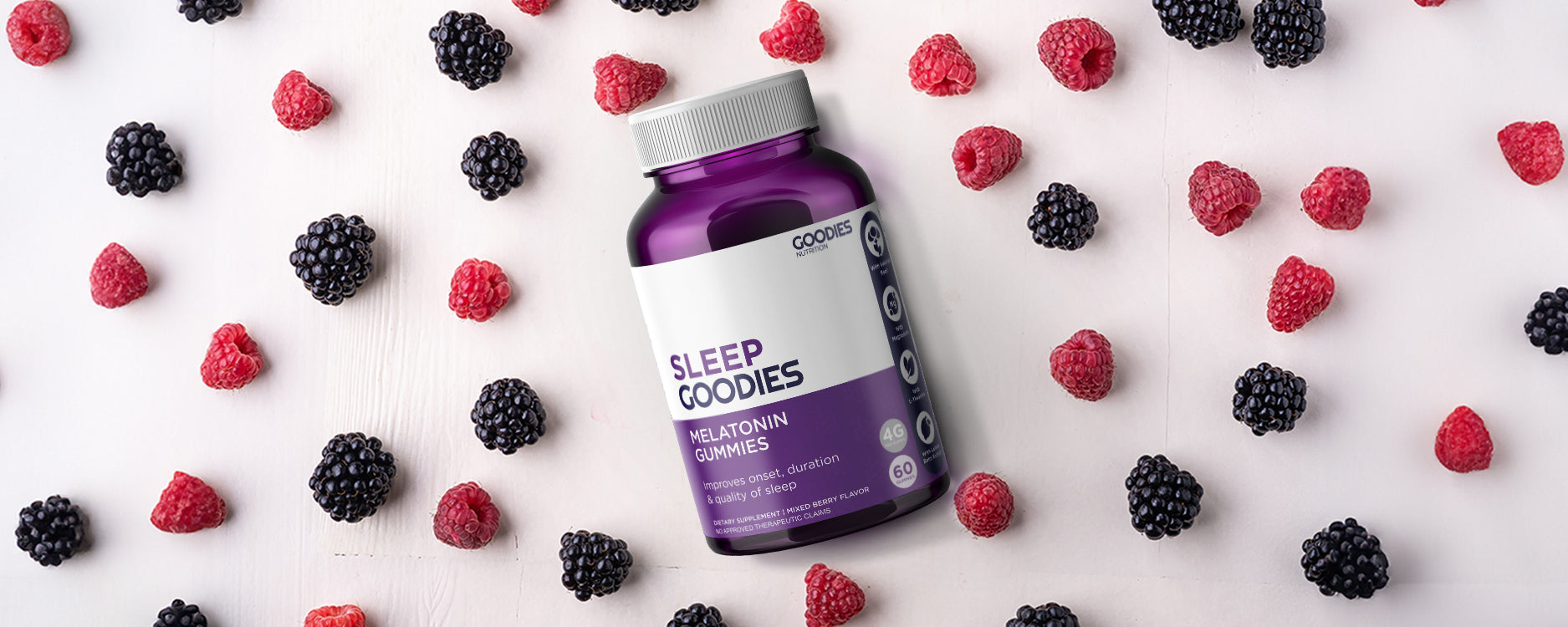 Our Sleep Goodies contain melatonin, to further support its natural production in our body. By doing this, you will be able to fall asleep faster and achieve deeper sleep.