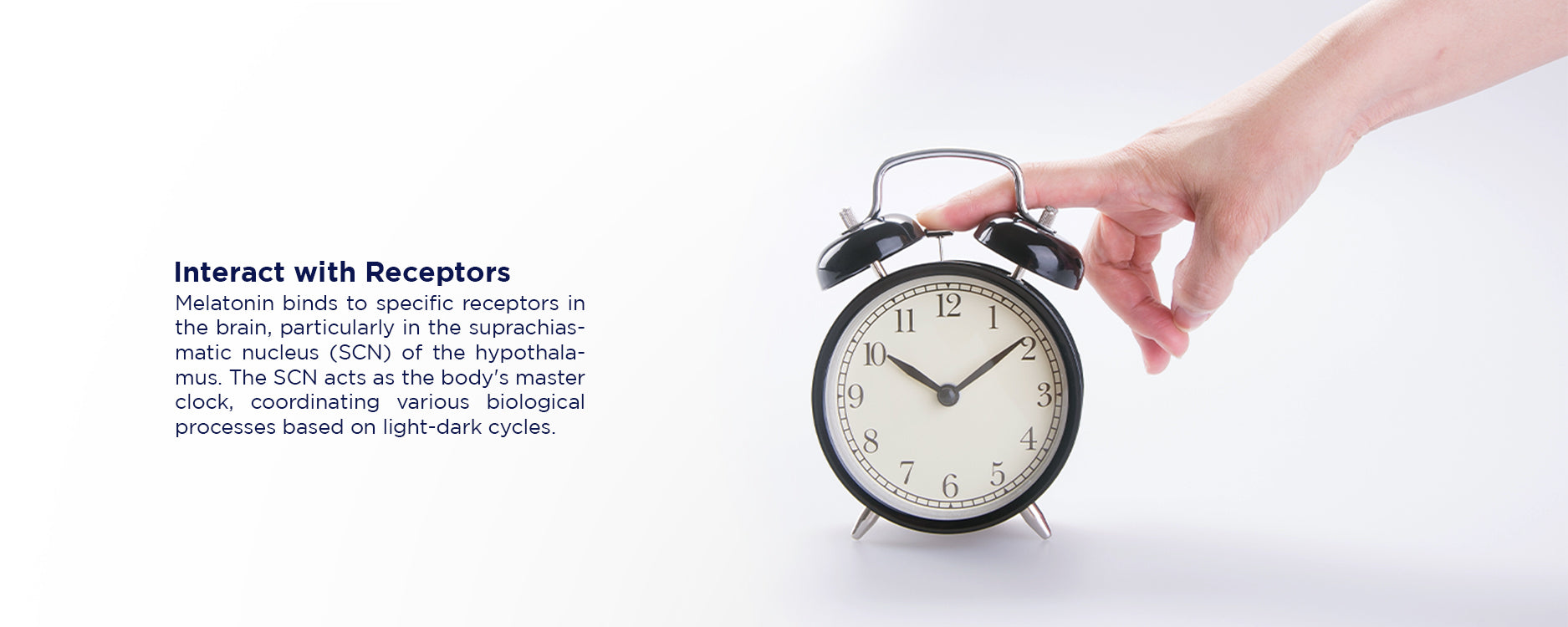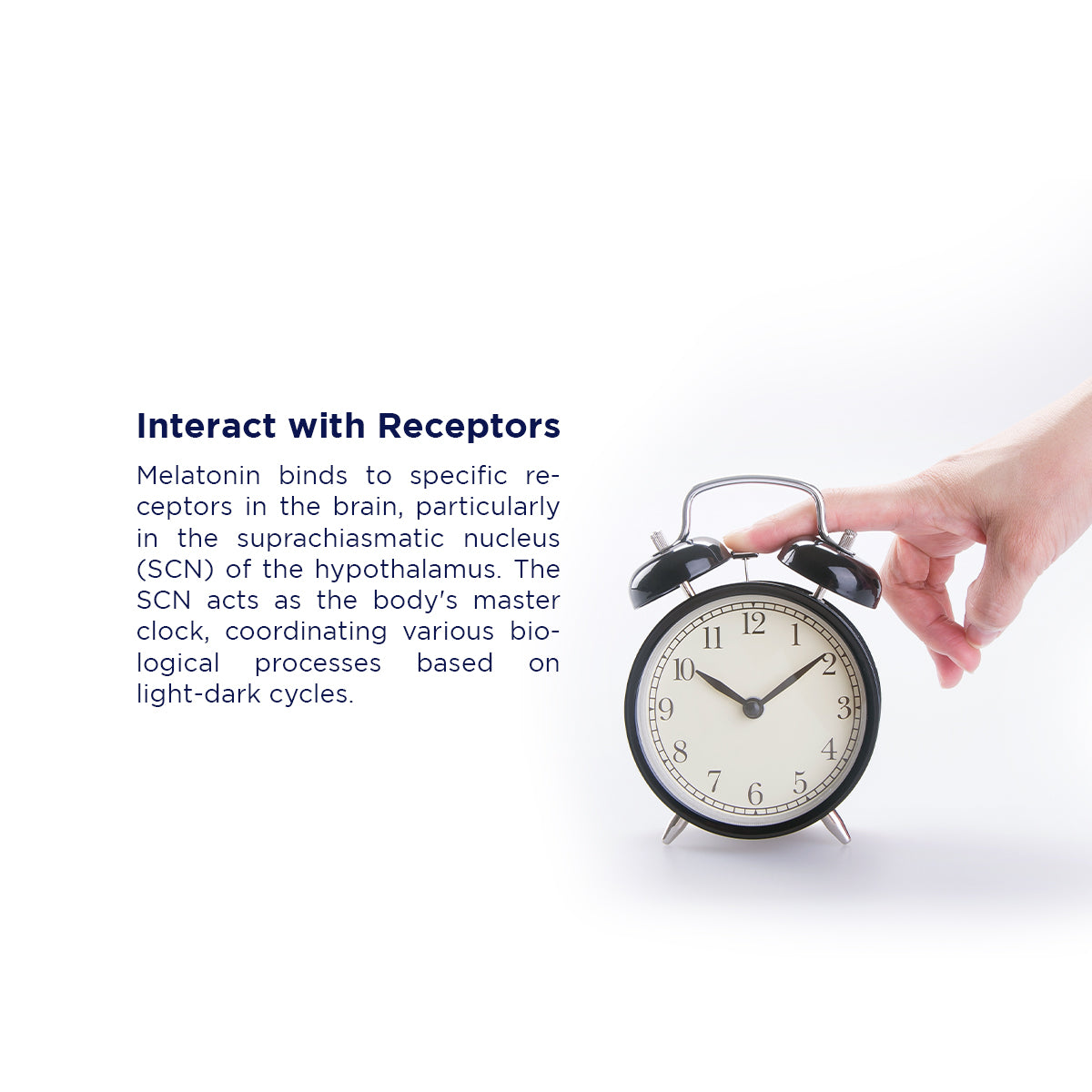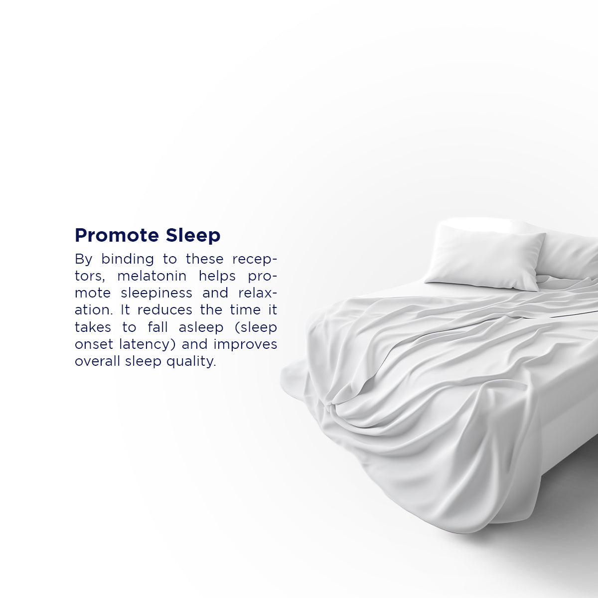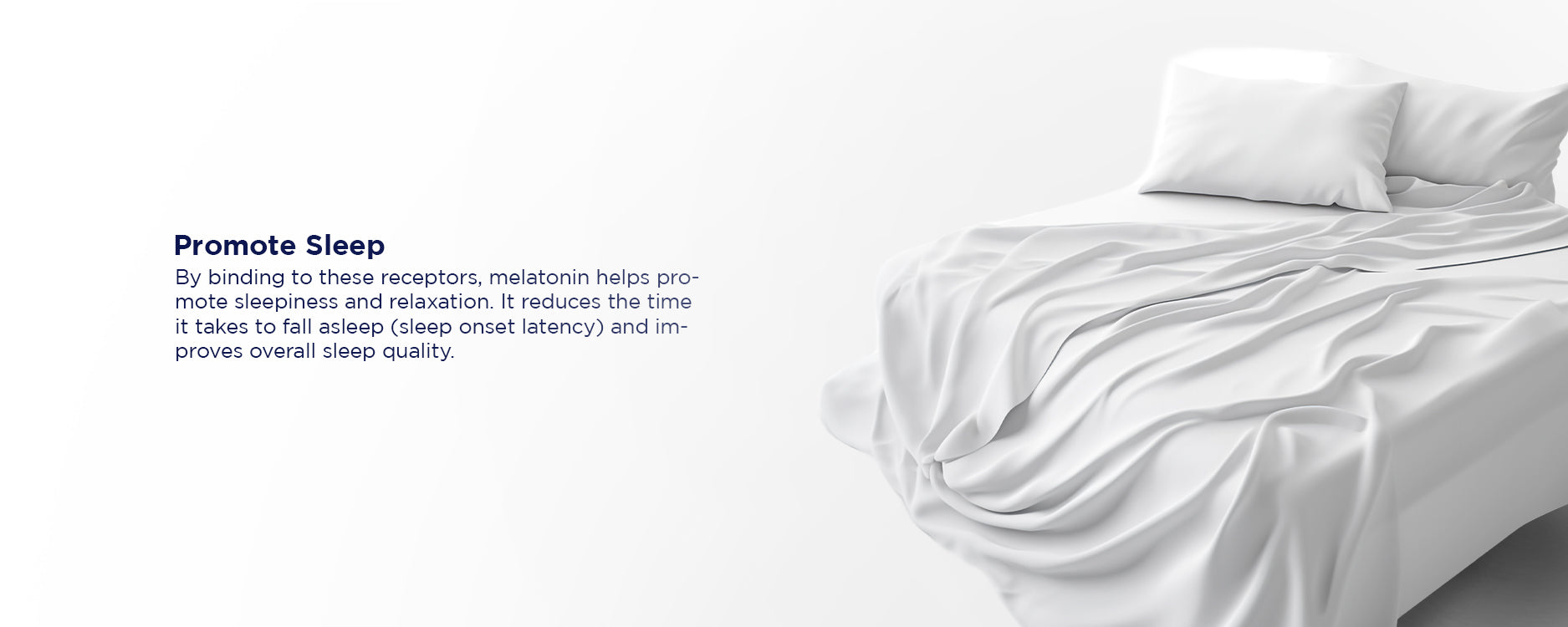 Melatonin reduces sleep onset latency. When melatonin binds to receptors in the brain, particularly in the suprachiasmatic nucleus (SCN) of the hypothalamus, it helps inhibit wakefulness-promoting signals and encourages the transition to sleep.